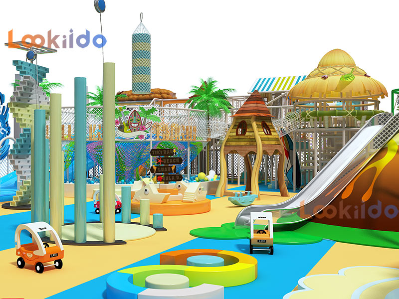 / Projects / Shopping Malls / Coconut Beach Island Theme Adventure Playground with Donut Slides Kids Trampolines