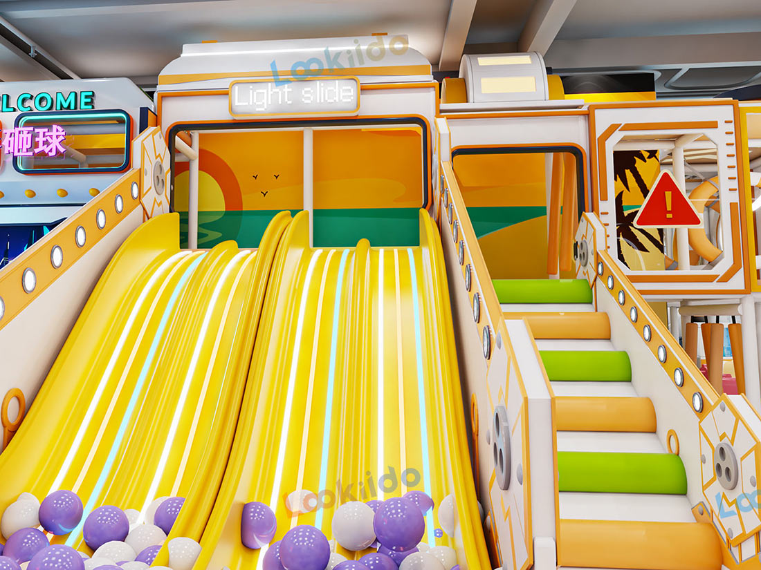 Explore a hybrid indoor playground combining ticketed soft play with free-entry arcade. Ninja course, spiral slide, ball pool, projection games, plus claw machines, racing games, and card-based point rewards. Built for repeat visits and higher revenue.